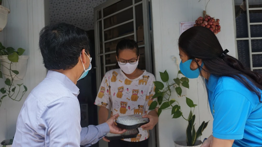 200 suất cơm miễn phí đã được trao tặng người lao động ở quận Tân Phú gặp khó khăn do ảnh hưởng của dịch COVID-19. Ảnh: NGUYỄN QUYÊN