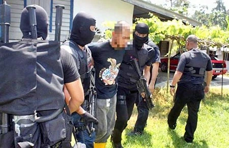 Một tên khủng bố bị bắt ở Kuala Kangsar thuộc bang Perak (Malaysia) ngày 18-6. Ảnh: THE STAR
