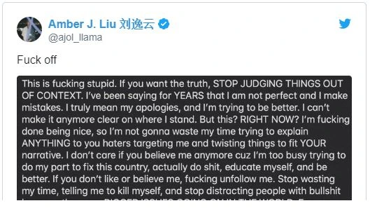 Nữ ca sĩ Amber tức giận, vì vậy cô đã đăng một tin nhắn dài trên mạng xã hội Twitter cùng với dòng chữ nhạy cảm.