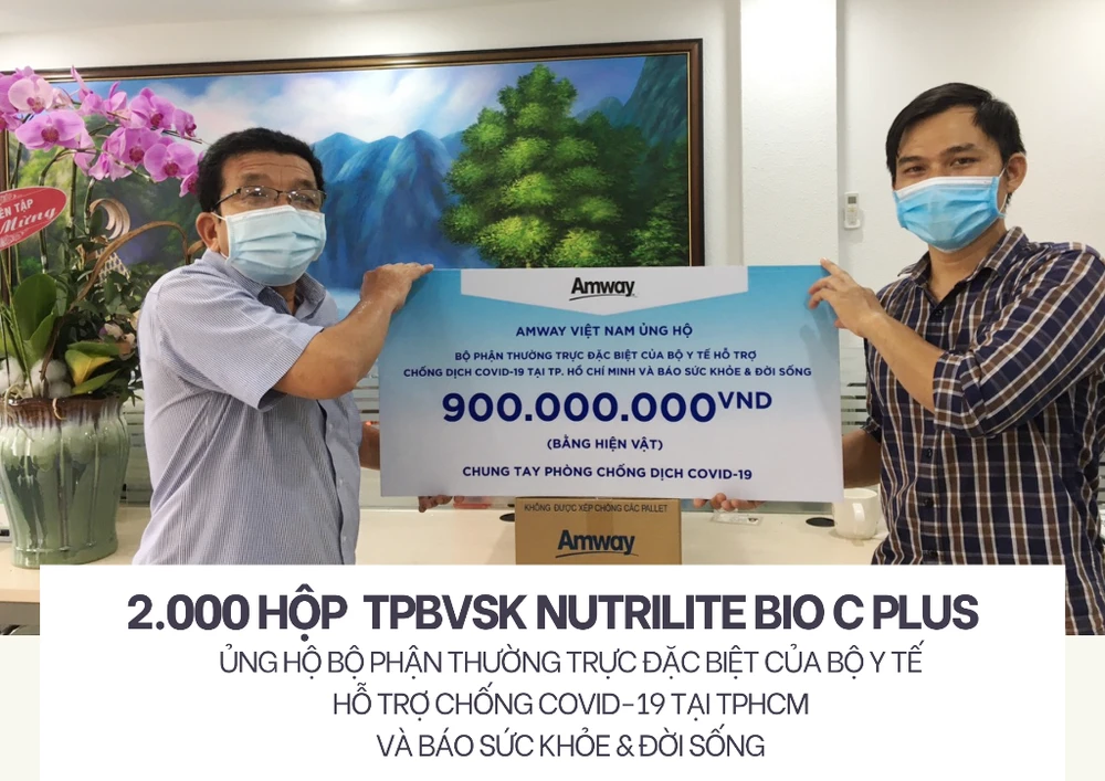 Theo đó, Amway Việt Nam đã ủng hộ khẩn cấp 2.000 hộp thực phẩm bảo vệ sức khỏe (BVSK) Nutrilite Bio C plus đến Bộ phận thường trực đặc biệt của Bộ Y tế hỗ trợ chống dịch COVID-19 tại TP.HCM và 500 chai xà phòng rửa tay đậm đặc G&H Protect+ cùng 500 chai nước rửa đa năng L.O.C. đến BV Quân y 175.