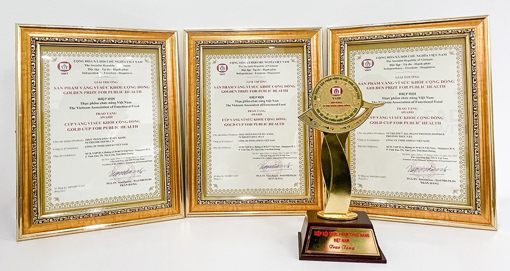 Tại giải thưởng lần này, nhãn hiệu Nutrilite của Amway tiếp tục được trao tặng “Cúp vàng vì sức khỏe cộng đồng” cho ba sản phẩm: Thực phẩm bổ sung Nutrilite All Plant Protein, Thực phẩm bảo vệ sức khỏe Nutrilite Bio C Plus và Thực phẩm bảo vệ sức khỏe Nutrilite Double X.