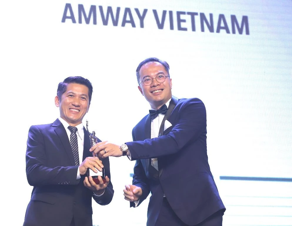 Ông Huỳnh Thiên Triều, Giám đốc Điều hành Amway Việt Nam nhận giải thưởng do HR Asia trao tặng.