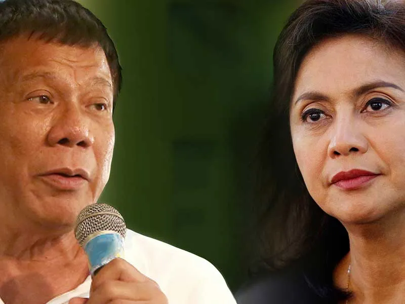 Tổng thống Rodrigo Duterte (trái) và Phó Tổng thống Leonor Robredo đang có những mâu thuẫn về chủ trương hợp tác với Trung Quốc ở biển Đông. Ảnh: RAPPLER
