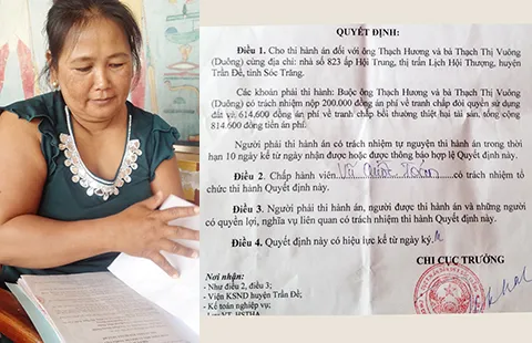 Tuy nhiên, theo bà Vuông, ngày 24-2, Chi cục THA dân sự Trần Đề ra quyết định THA gửi đến bà.
