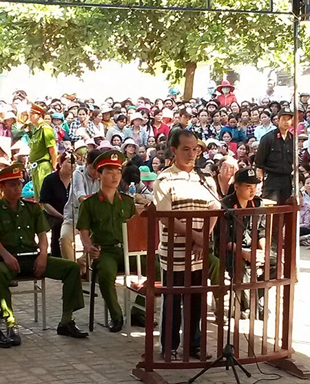 Hàng trăm người dân địa phương đã có mặt từ sớm để theo dõi phiên xét xử do vụ án này gây chấn động tại địa phương. Nhiều người còn mang cả băng rôn với nội dung xin giảm nhẹ hình phạt cho bị cáo.