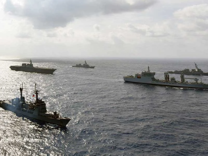 Hải quân Ấn Độ tham gia tập trận chung với lực lượng các nước Mỹ, Philippines, Nhật Bản trên biển Đông hồi tháng 5-2019. Ảnh: AP