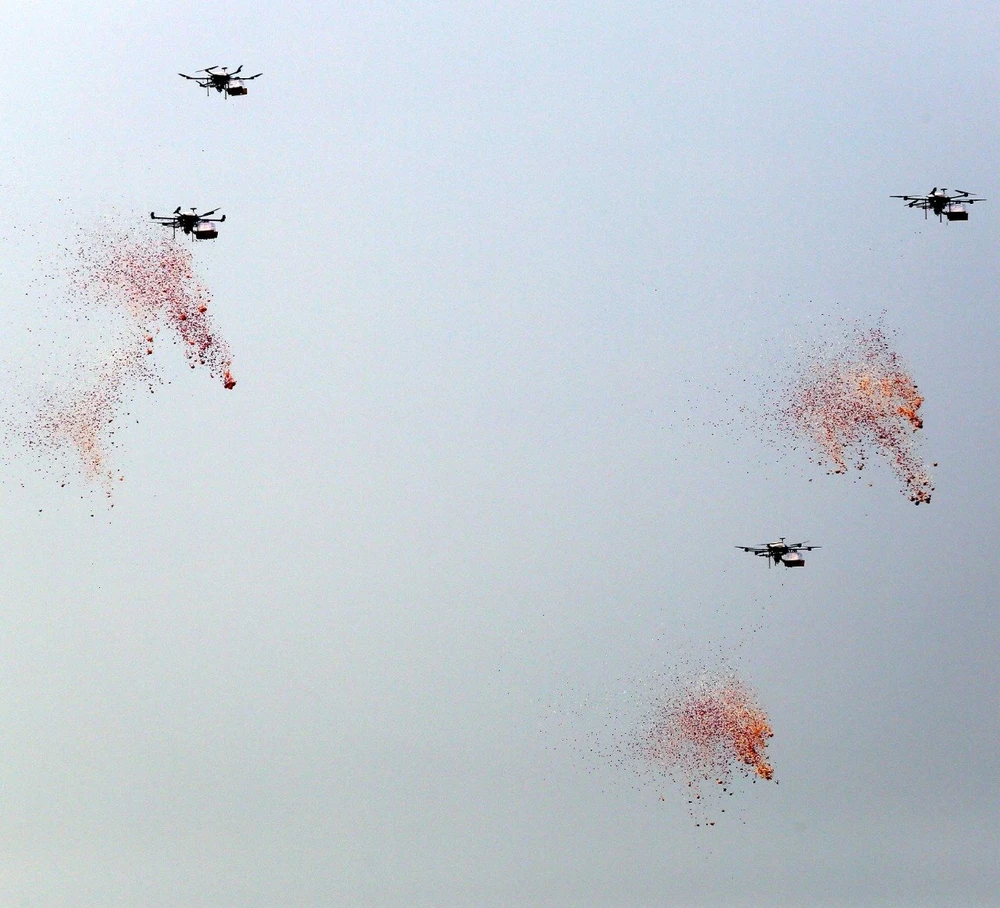 Bản demo UAV bầy đàn của Lục quân Ấn Độ. Ảnh: TWITTER