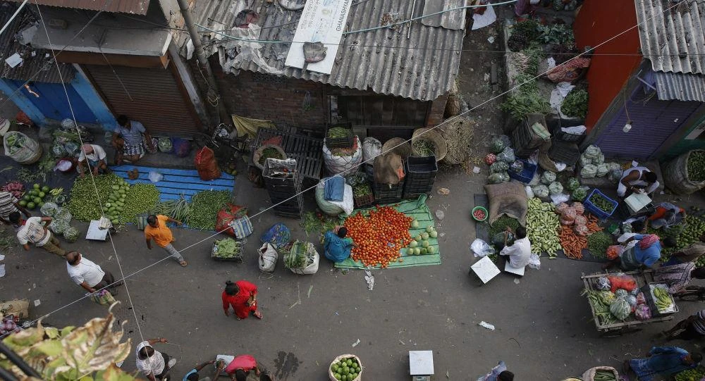 Người dân đi chợ tại một chợ rau củ quả bên đường ở Kolkata, Ấn Độ. Ảnh: AP