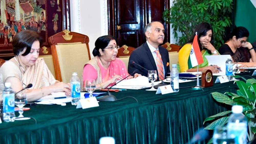 Bộ trưởng Ngoại giao Ấn Độ Sushma Swaraj phát biểu tại hội nghị.
