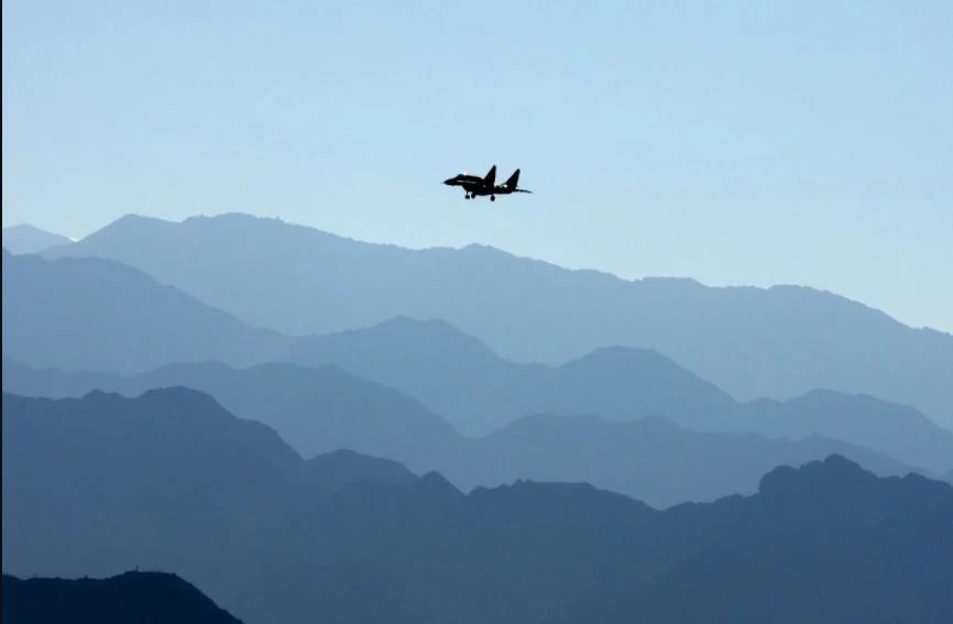 Một máy bay chiến đấu của Không quân Ấn Độ bay qua một khu vực Ladakh, thuộc dãy Himalaya giáp Trung Quốc. Ảnh: AFP/SCMP