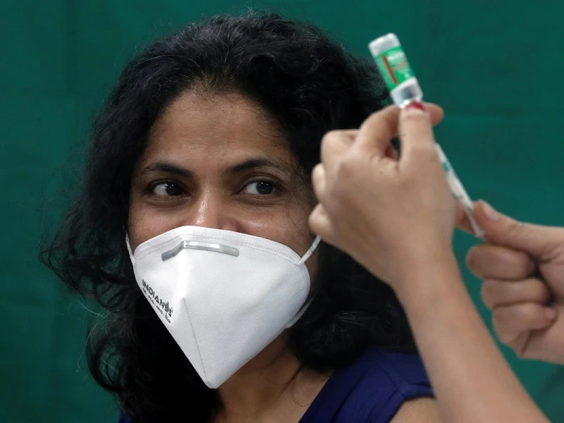 Một người ở TP Mumbai (Ấn Độ) đi tiêm ngừa COVID-19 bằng vaccine của AstraZeneca. Ảnh: REUTERS