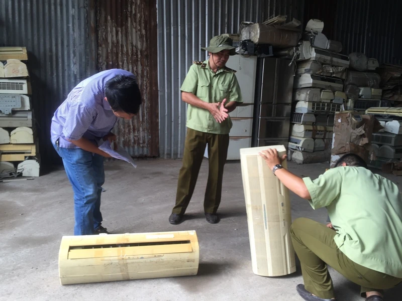 Quản lí thị trường TP.HCM phối hợp cùng lực lượng chức năng phát hiện kho chứa hàng chứa máy lạnh...đã qua sử dụng ở quận Tân Phú