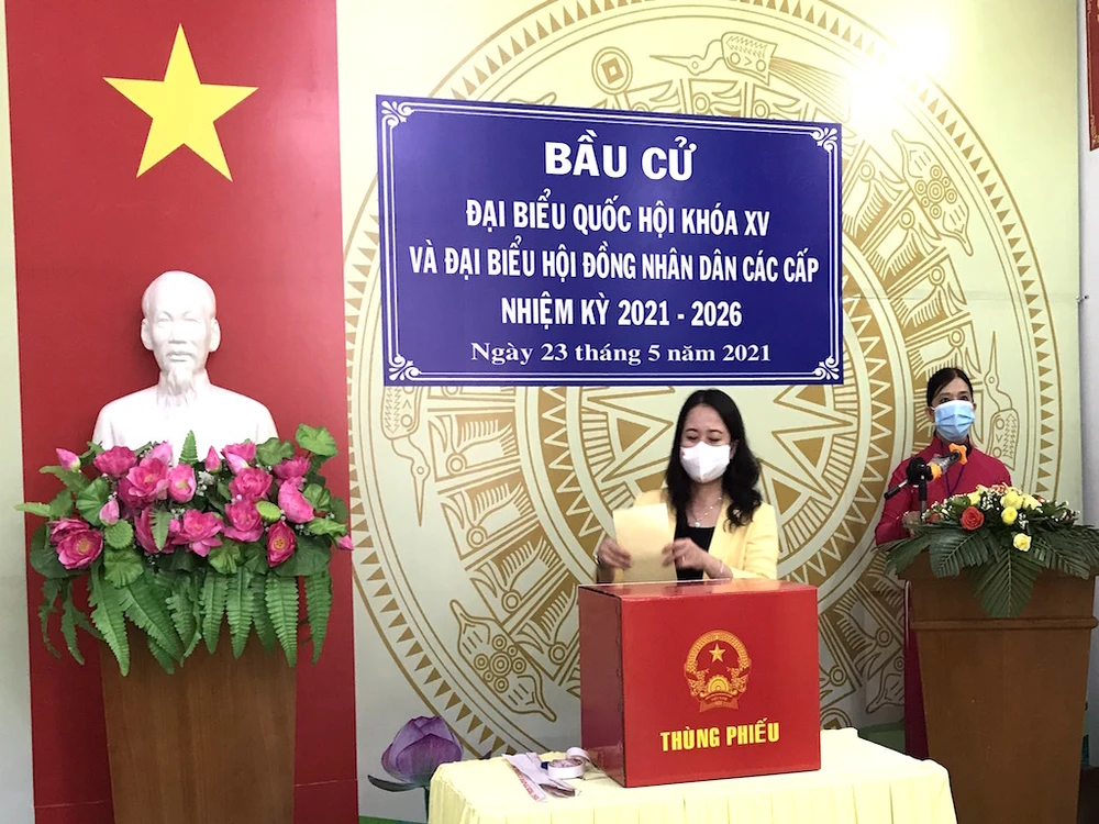 Phó Chủ tịch nước Võ Thị Ánh Xuân bỏ phiếu bầu tại An Giang.