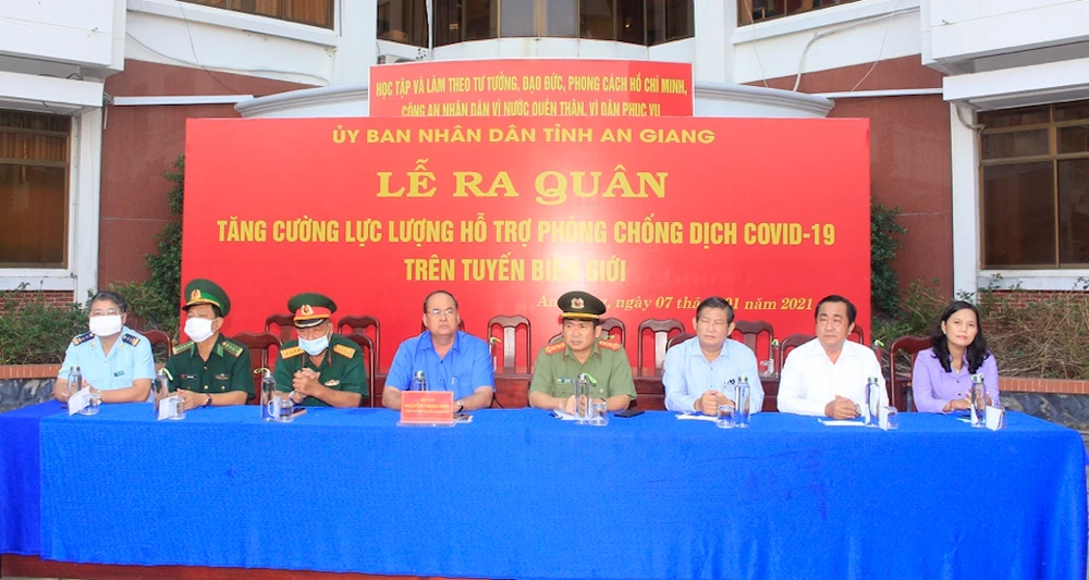 Ngày 7-1, Công an tỉnh An Giang tổ chức Lễ ra quân tăng cường lực lượng hỗ trợ phòng, chống dịch COVID-19 trên tuyến biên giới.