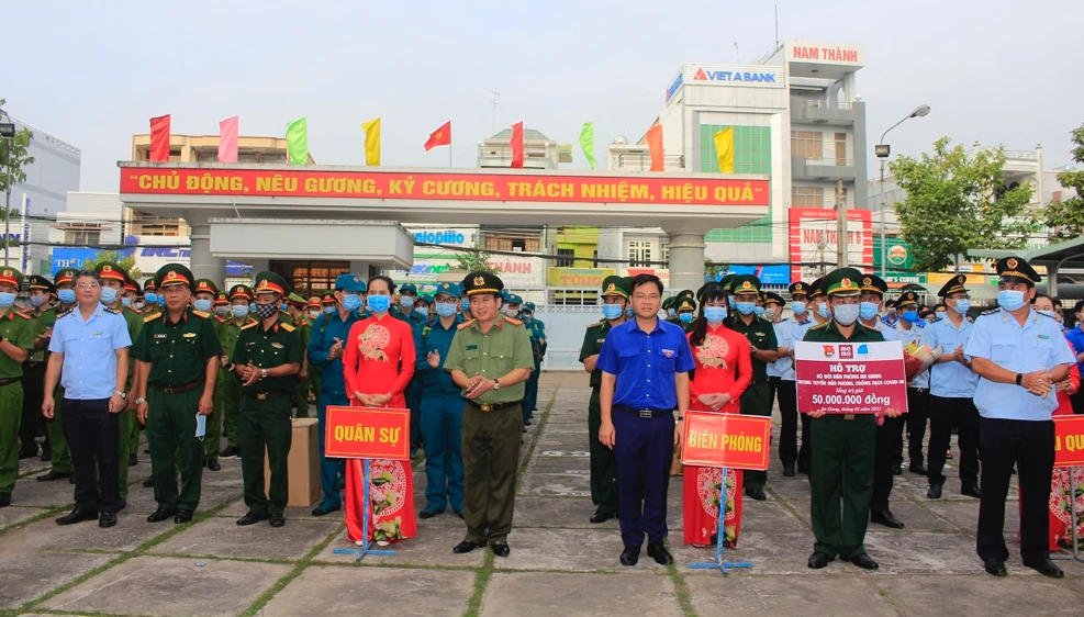 Dịp này, Công an tỉnh và Tỉnh đoàn An Giang đã vận động, trao tặng 20.000 khẩu trang y tế và 50 triệu đồng cho lực lượng tăng cường hỗ trợ phòng, chống dịch COVID-19.