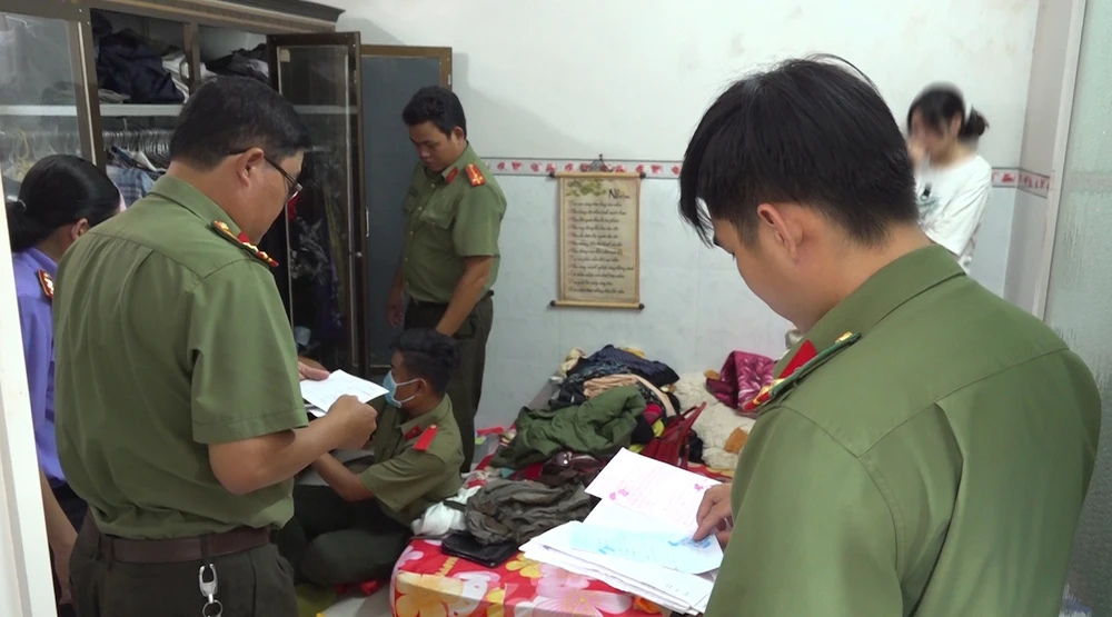 Lực lượng công an khám xét nơi ở của bị can, thu giữ nhiều tài liệu, vật chứng. Ảnh: Công an cung cấp