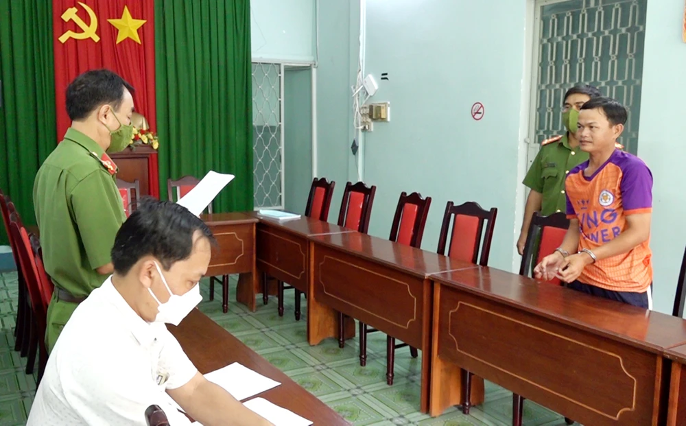 Công an đọc lệnh bắt tạm giam Trần Văn Dở. Ảnh: CACC