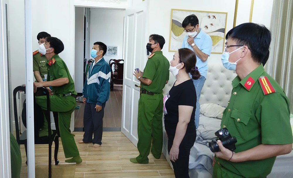 Lực lượng chức năng khám xét nơi ở của bị can Thủy. Ảnh: CACC