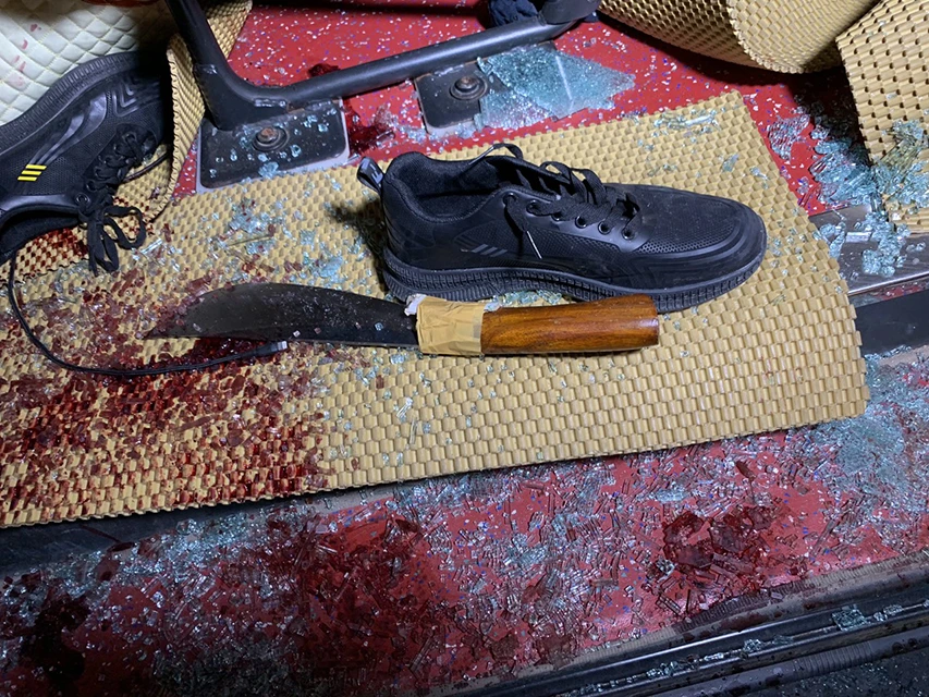 Chiếc xe bị nhóm người chặn chém. Ảnh: CACC