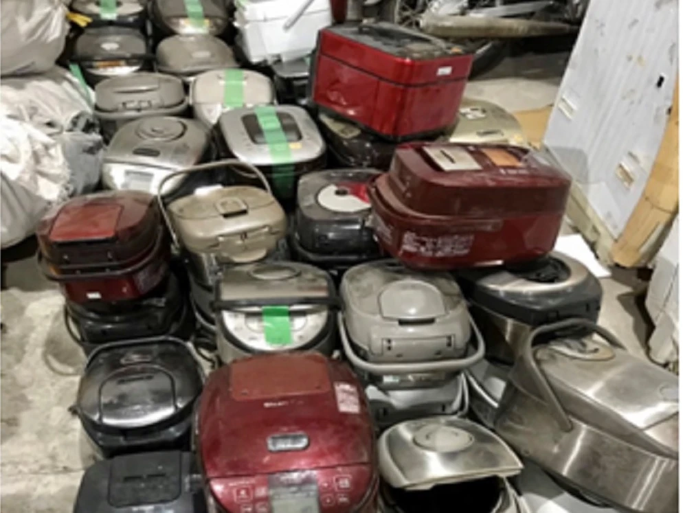 Số nồi cơm điện nghi nhập lậu công an thu giữ. Ảnh: QUỲNH MINH