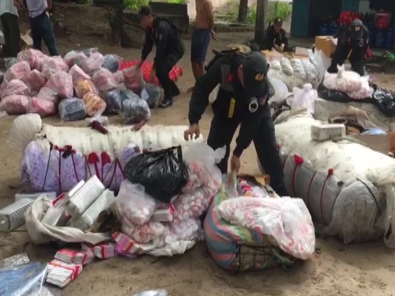 Lực lượng chức năng triệt phá một vụ buôn lậu hàng hóa. Ảnh: HD