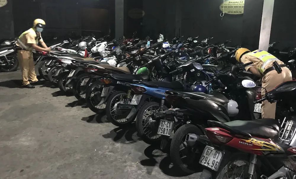 Tại đây công an còn tạm giữ một đầu thu camera, 103 xe không chứng minh được chủ sở hữu nghi vấn của khách đến karaoke bỏ lại do sợ bị xử lý. Ảnh: HD