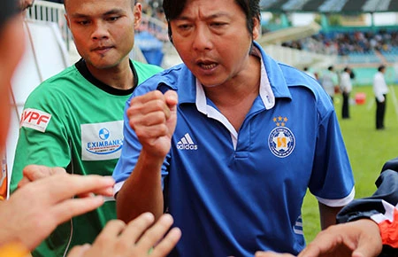 HLV Huỳnh Đức nhắn nhủ các học trò quyết tâm để giải hạn từ đầu mùa. Ảnh: XUÂN HUY