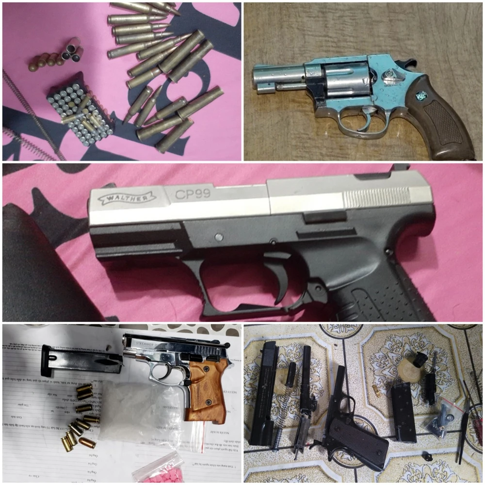 Tiến hành khám xét khẩn cấp nơi ở của những người này, công an thu giữ ba khẩu súng, chín viên đạn, cùng nhiều loại ma túy khác nhau.