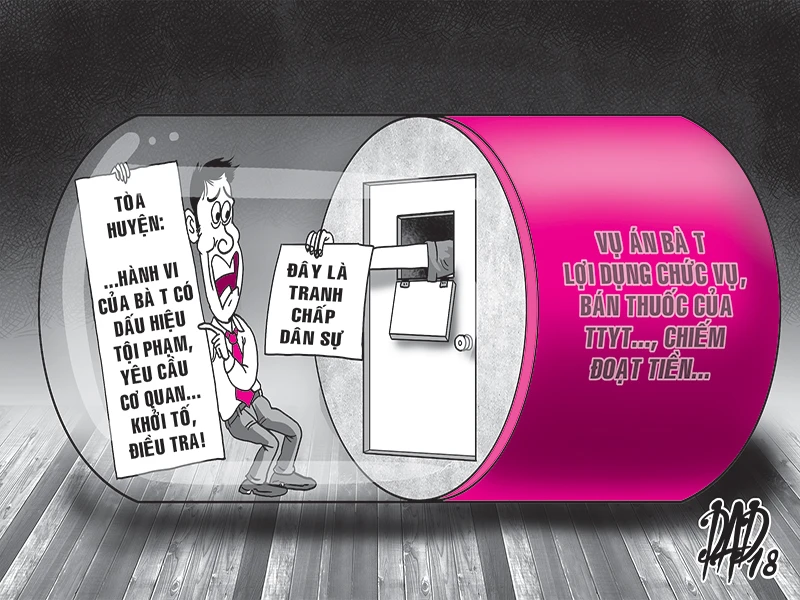 Sau khi thụ lý đơn khởi kiện, TAND huyện Khánh Sơn nhận thấy hành vi của bà Thắm có dấu hiệu tội phạm nên đã có công văn kiến nghị Cơ quan CSĐT Công an tỉnh Khánh Hòa xử lý hình sự và tạm đình chỉ vụ án chờ kết quả giải quyết. Nhưng ngày 3-12-2015, công an tỉnh có công văn xác định đây là quan hệ dân sự. Tháng 8-2016, TAND huyện tiếp tục có công văn đề nghị khởi tố, điều tra làm rõ hành vi của bà Thắm và trách nhiệm của ban giám đốc TTYT. Nhưng lần này cơ quan CSĐT công an huyện cũng không thụ lý, điều tra vì cho rằng đã có kết luận của công an tỉnh. Cuối cùng, TAND huyện phải tiếp tục giải quyết vụ án theo thủ tục dân sự.