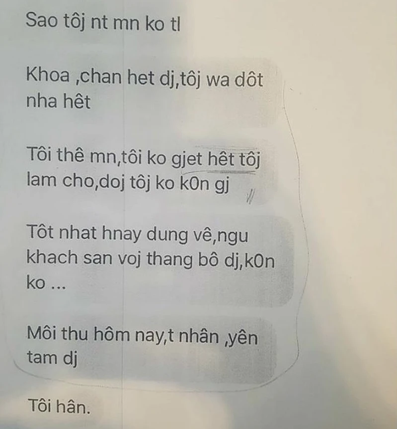 Tin nhắn của bị cáo nhắn cho nạn nhân Ph. trước khi xảy ra vụ án.