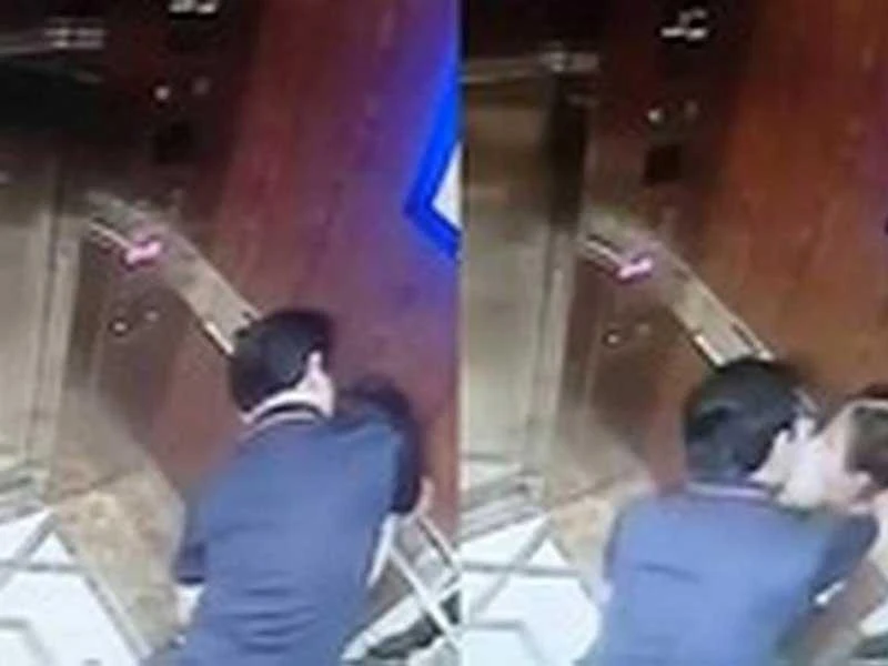 Hình ảnh ông Nguyễn Hữu Linh gí bé gái, dâm ô trong thang máy. (Ảnh cắt từ clip)