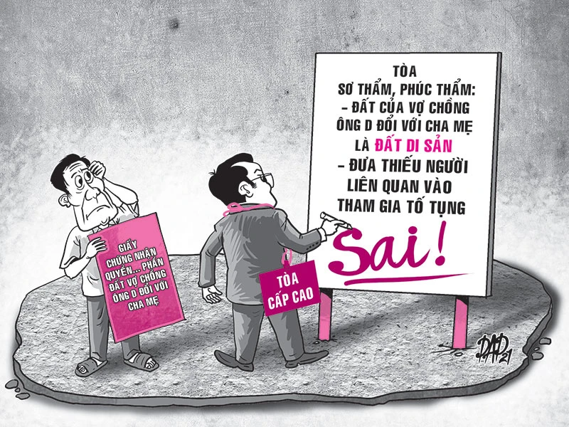 Sau đó, ba anh em ông C. kiện yêu cầu hủy giấy chứng nhận quyền sử dụng đất đứng tên hộ gia đình ông D. (một người con với vợ trước của cha ông), để lại 116 m2 đất làm nhà thờ hai cụ, phần còn lại chia thừa kế cho các ông bà.