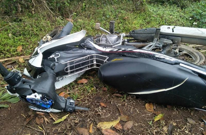 Chiếc xe máy bị xô ngã hư hỏng tại khu vực ẩu đả. Ảnh: Đ.HẢI