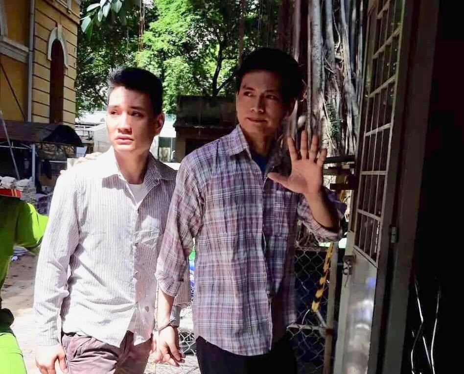 Hai bị cáo Cường, Nam tranh thủ nhìn người thân giờ toà nghỉ .