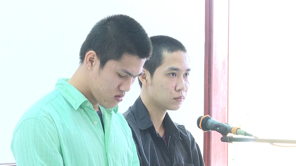 Thanh (áo xanh) và Đỉnh tại tòa.