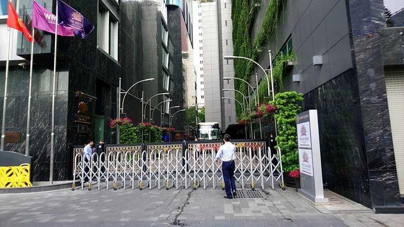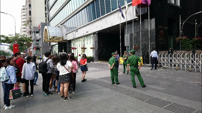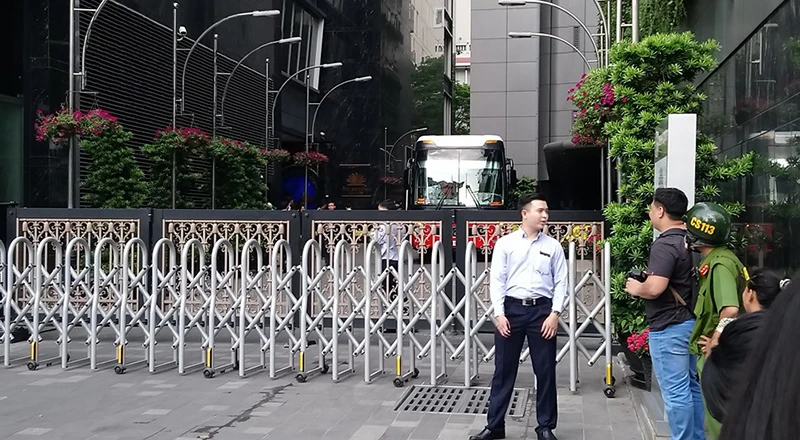 Bên ngoài hàng rào được đóng lại, nhiều lực lượng chức năng được bảo vệ, không cho người hâm mộ vào. Nhiều thanh niên xếp hàng dài chờ được gặp các cầu thủ.