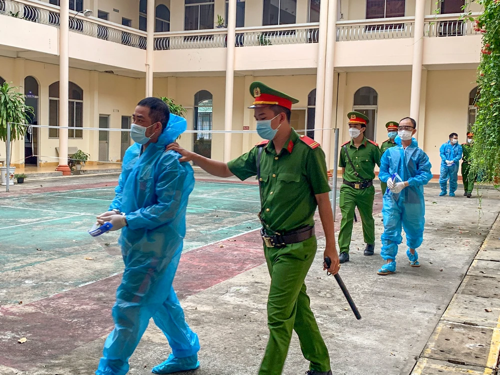 Trong quá trình dẫn giải các bị cáo đến tòa, lực lượng chức năng tỉnh An Giang luôn đảm bảo các quy định về phòng, chống dịch COVID-19.