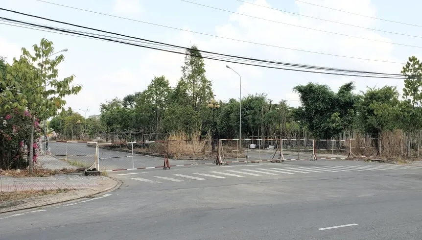 Một con đường dẫn đến khu ký túc xá ĐH Quốc gia được dựng rào chắn. Ảnh: TỰ SANG