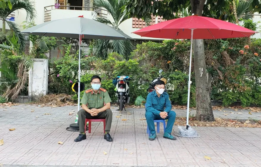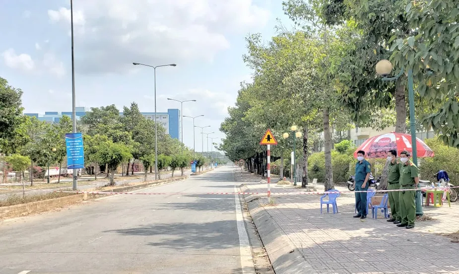 Theo các chiến sĩ đang làm nhiệm vụ, tất cả phương tiện và người dân muốn di chuyển bên trong khu đã được căng dây cách ly đều được ngăn cản. “Chỉ có xe làm nhiệm vụ và xe chở lương thực, nhu yếu phẩm mới được đi vô” - một chiến sĩ cảnh sát cho biết.