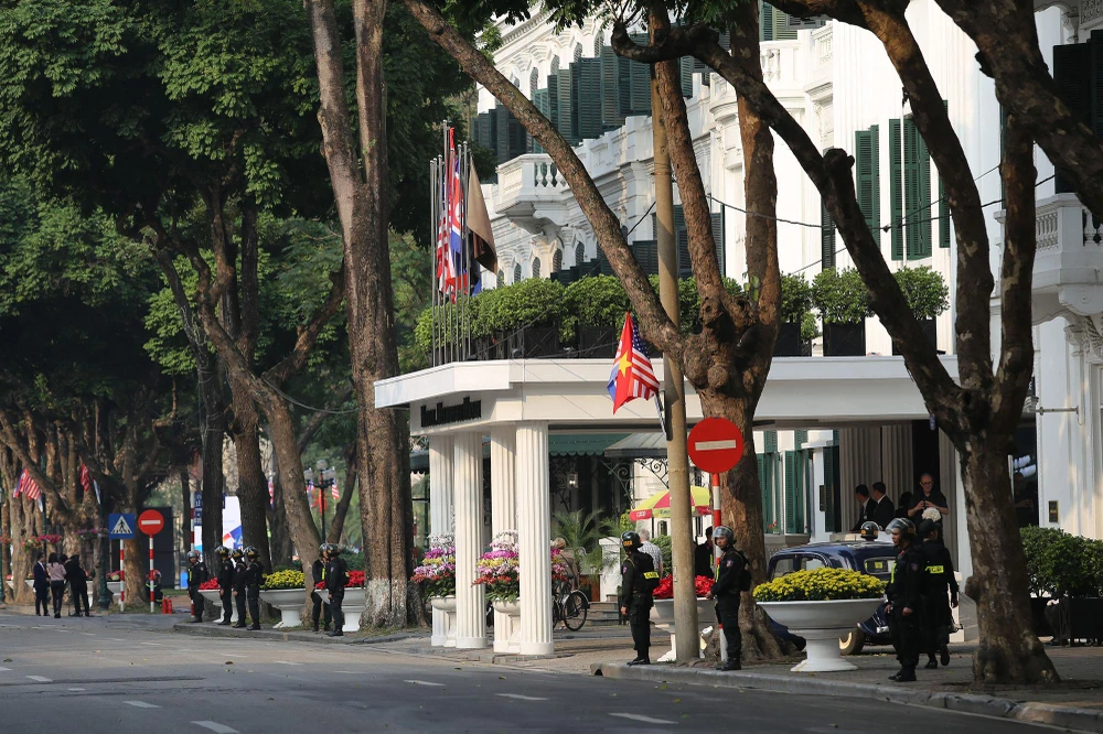 Tuyến đường Ngô Quyền và Lý Thái Tổ dẫn vào khách sạn Metropole ở Hà Nội bị chặn. Lực lượng cảnh sát giao thông, cảnh sát cơ động có mặt khắp nơi. Đông đảo người dân, phóng viên trong nước và quốc tế đã có mặt từ sớm để chờ đợi cuộc gặp giữa hai nhà lãnh đạo Mỹ - Triều.