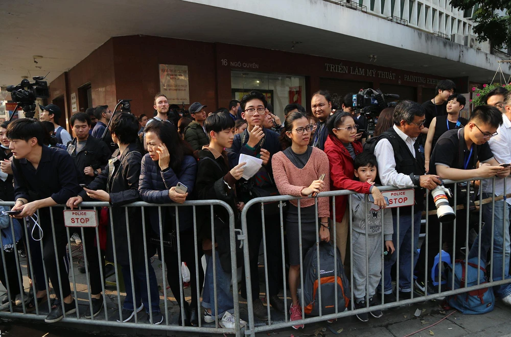 Hàng trăm người chờ đợi trước mấy tiếng đồng hồ chỉ mong nhìn thấy hai nhà lãnh đạo Mỹ - Triều.