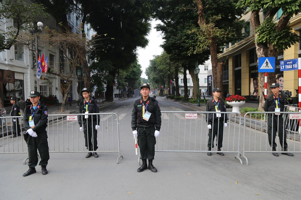 Tuyến đường Lý Thái Tổ bị chặn để phục vụ hội nghị.