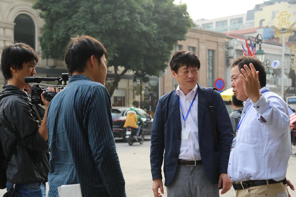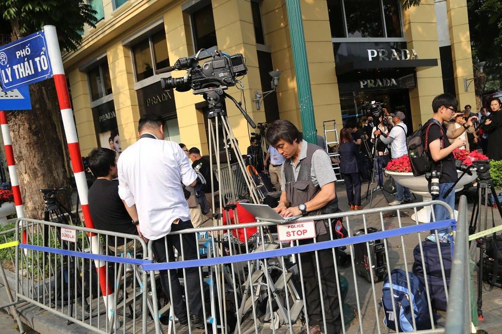 Phóng viên quốc tế có mặt tại khu vực diễn ra từ sớm.