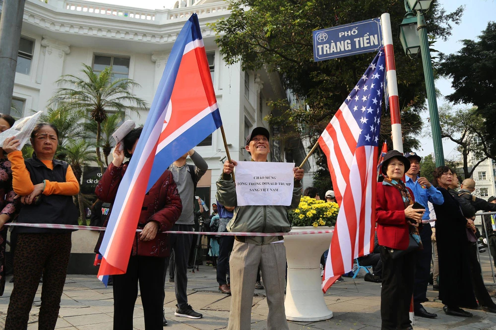 Người dân chờ đón Tổng thống Trump và Chủ tịch Kim gần khu vực khách sạn sẽ diễn ra hội nghị.