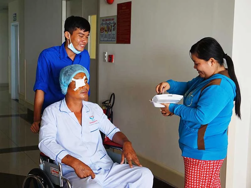 TAND huyện Châu Thành đã thụ lý đơn yêu cầu bồi thường của anh Thanh (ngồi xe lăn). Ảnh: N.NGA