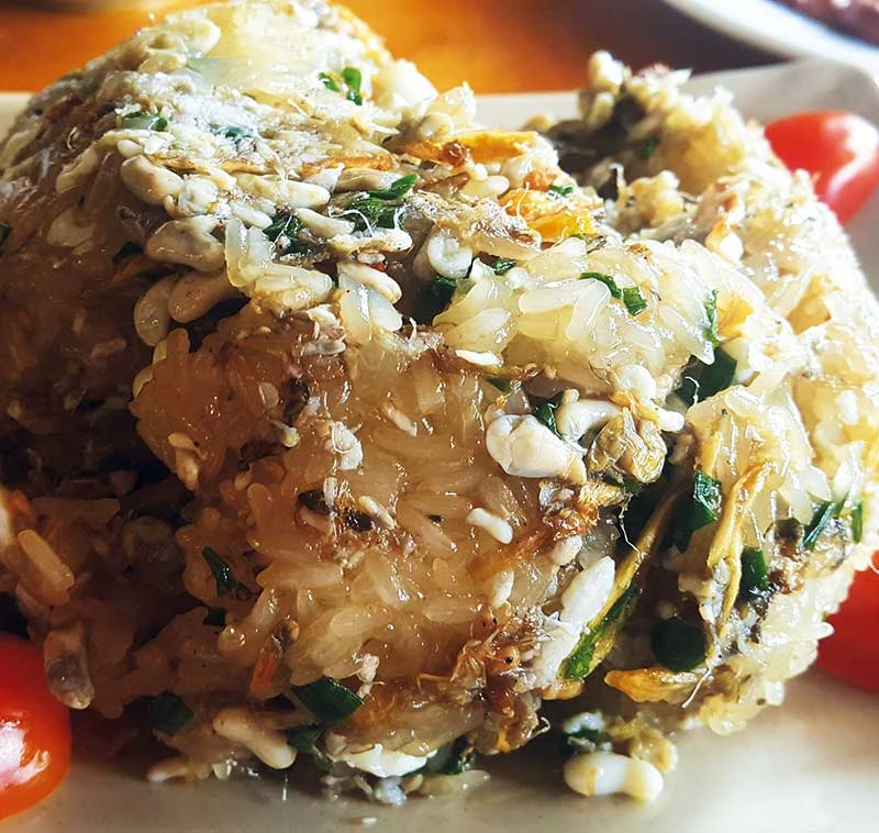Trứng kiến nấu xôi nhìn vừa hay mắt, ăn vừa ngon, lạ. Nhâm nhi với Beerlao, loại danh bia trong top 10 thế giới là không còn chỗ chê.