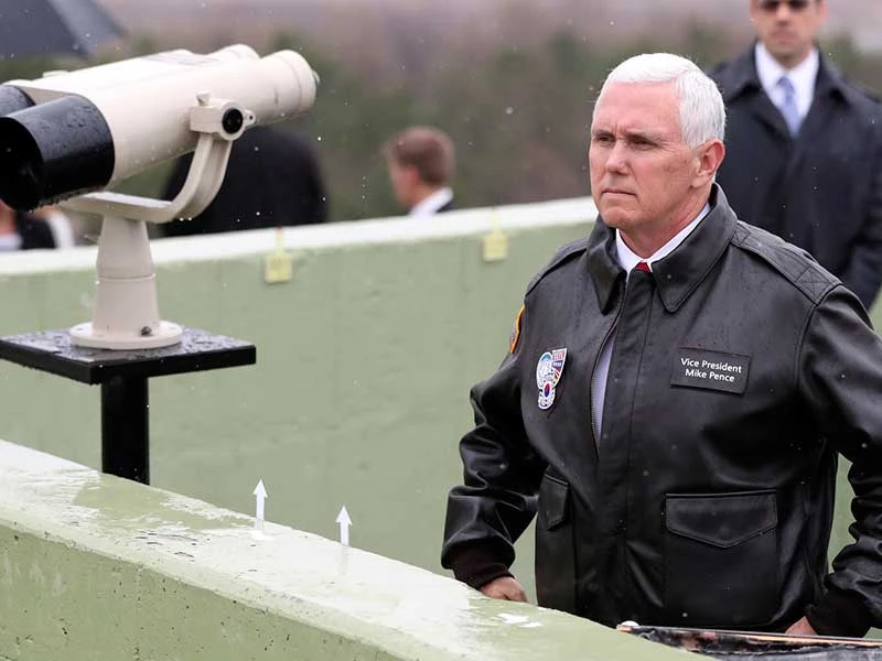 Phó Tổng thống Mỹ Mike Pence thăm khu vực DMZ ngày 8-2. Ảnh: REUTERS