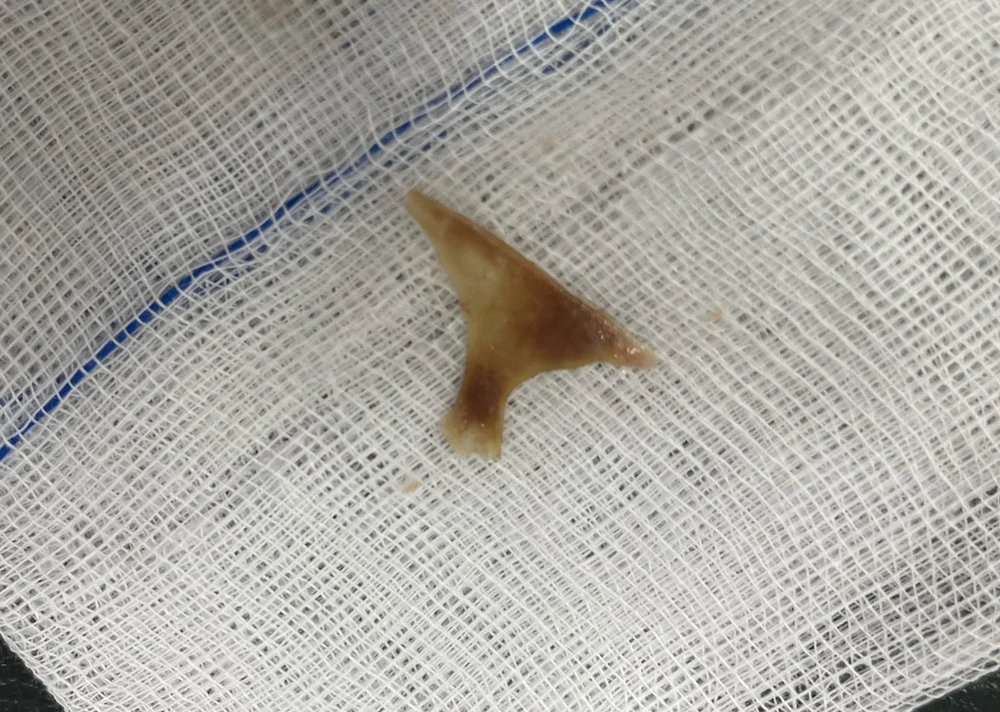 Mảnh xương heo lấy ra từ thực quản cụ bà. Ảnh: BVCC