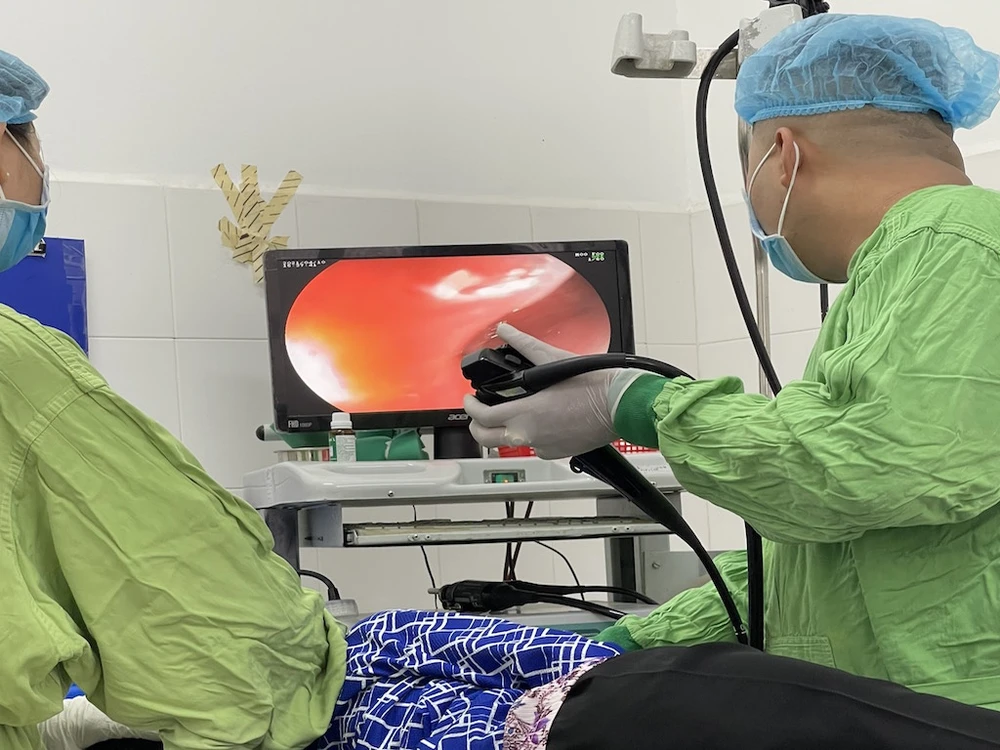 Bác sĩ nội soi lấy dị vật trong thực quản bệnh nhân. Ảnh: BVCC