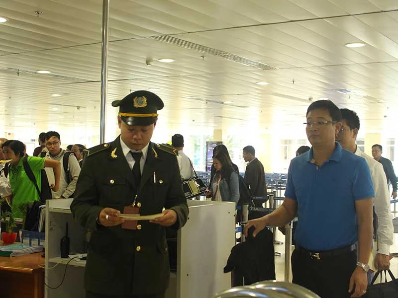 Nhân viên sân bay kiểm tra hành khách trước chuyến bay. Ảnh: P.ĐIỀN